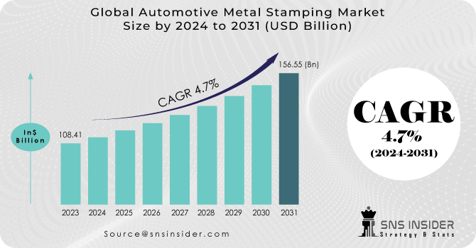 The Automotive Metal Stamping Market Forecast is poised for a remarkable transformation, driven by the rapidly evolving demands of the mobility industry and the need for innovative, lightweight, and high-performance components. According to a comprehensive market research report, the automotive metal stamping market size was valued at USD 108.41 billion in 2023 and is projected to reach a staggering USD 156.55 billion by 2031, exhibiting a robust compound annual growth rate (CAGR) of 4.7% during the forecast period of 2024-2031.