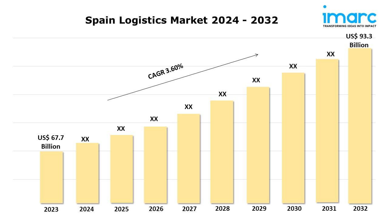 The Spain logistics market size reached USD 67.7 Billion in 2023. Looking forward, IMARC Group expects the market to reach USD 93.3 Billion by 2032, exhibiting a growth rate (CAGR) of 3.60% during 2024-2032.