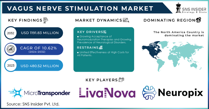 The Vagus Nerve Stimulation Market Size was valued at USD 480.52 million in 2023, and is expected to reach USD 1191.83 million by 2032, and grow at a CAGR of 10.62% over the forecast period 2024-2032.